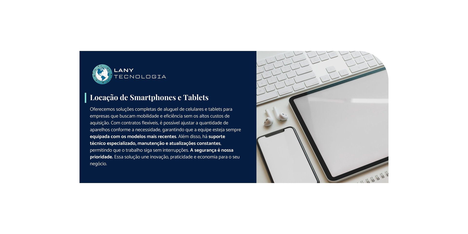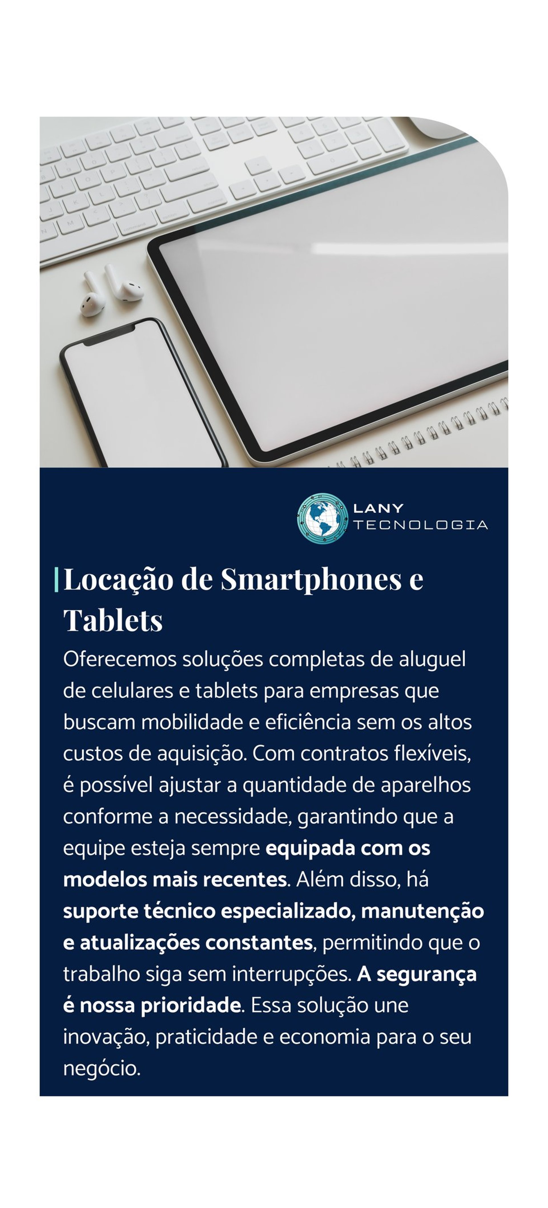 Potencialize a mobilidade corporativa com nossos serviços de outsourcing de smartphones e tablets, unindo praticidade, segurança e desempenho.